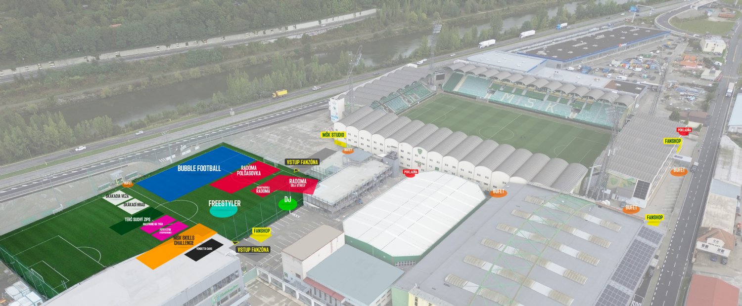 Už od 12:00 hod. bude na umelej tráve (vchod cez Športovú ulicu) pripravená bohatá Fanzóna MŠK so sprievodným programom, atrakciami, súťažami a maskotom Šošonom. Skorší príchod vám umožní komfortnejší vstup na štadión a plynulý priebeh celej návštevy.