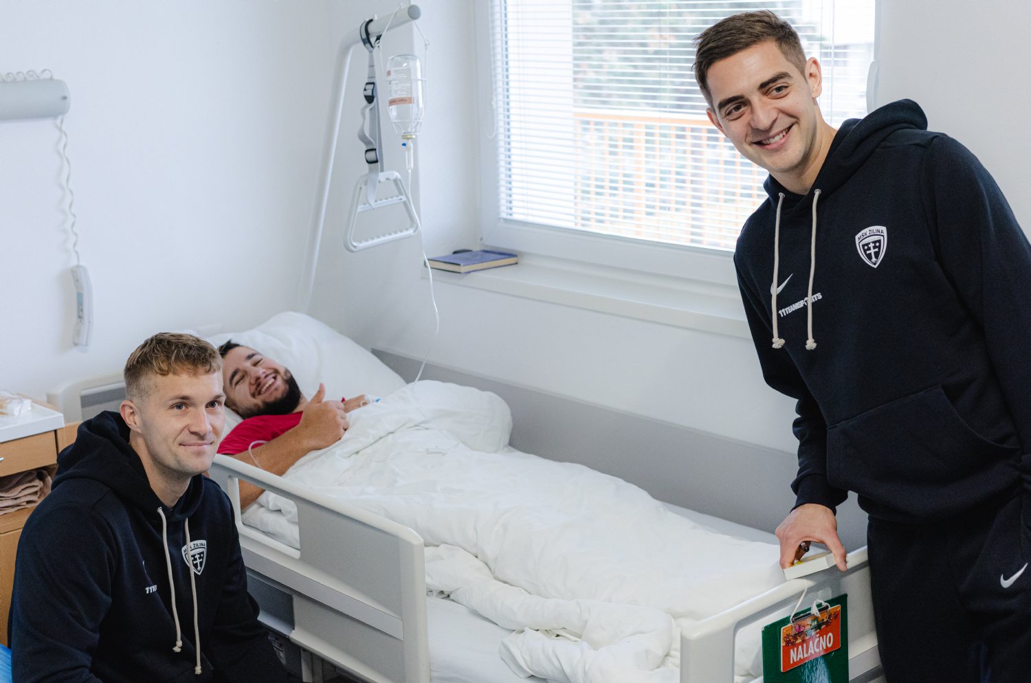 Návštevu nemocnice využila dvojica Šošonov Michal Faško a Ján Minárik na nielen odovzdanie šeku, ale aj na spríjemnenie chvíľ pre deti na oddelení pediatrickej ortopédie, kde sme v minulosti už prispeli na schodiskovú plošinu pre malých pacientov. S prvým menovaným futbalistom sme sa porozprávali o jeho pohľade na túto iniciatívu. Svoje doplnil aj náš dlhoročný futbalový lekár Juraj Popluhár.