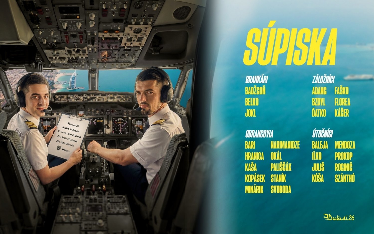 Z nominovanej 27-člennej výpravy sa po roku vracia do Al Hamriyah až 14 hráčov MŠK. Po šiestich rokoch so Šošonmi príde do známeho prostredia aj Pavol Staňo, ktorý tam v zime 2020 pôsobil rovnako ako hlavný tréner a mal v kádri dokonca aj štvoricu hráčov zo súčasného tímu – Filipa Kašu, Jána Minárika, Mira Káčera a Patrika Iľka.