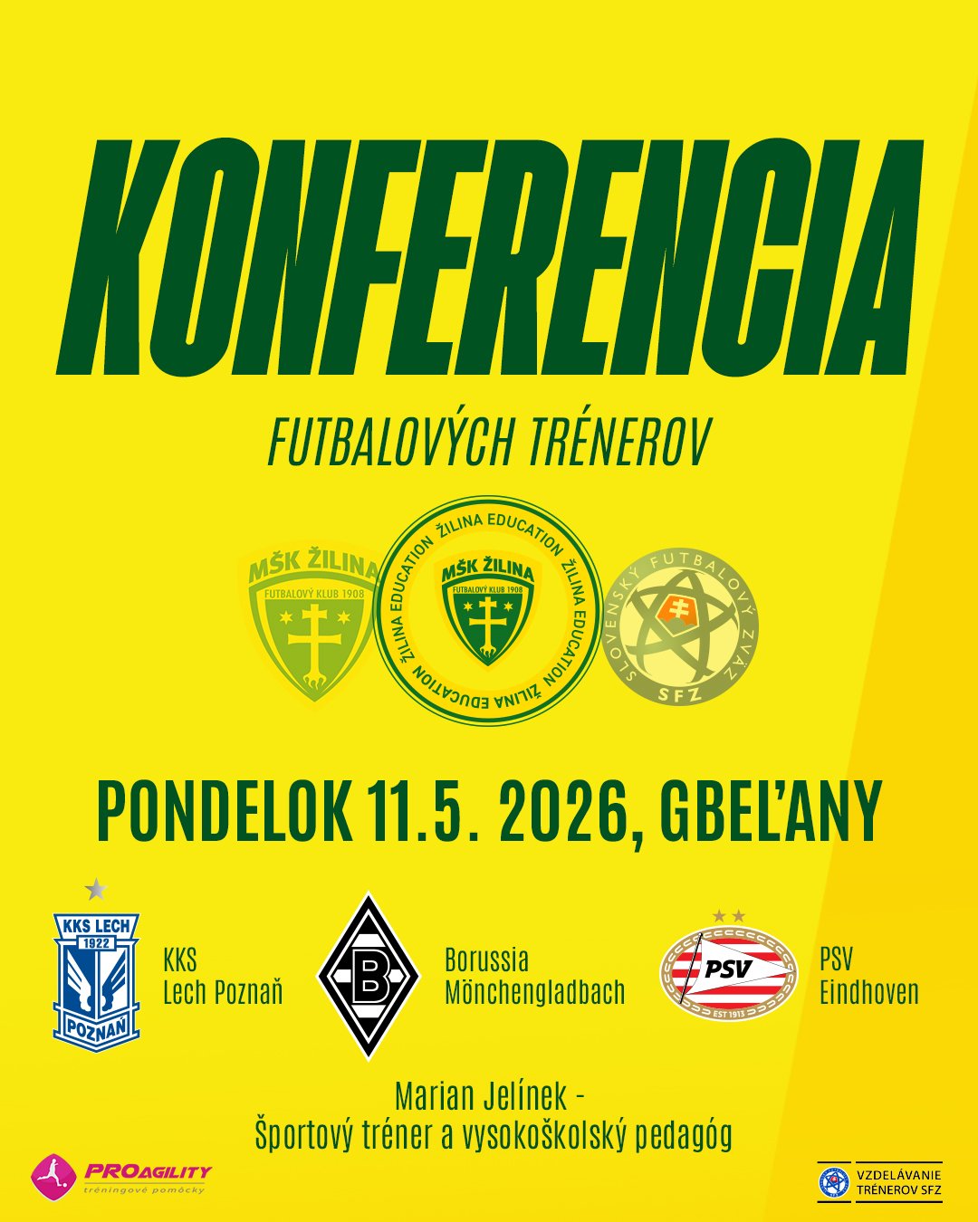 Projekt MŠK Žilina Education si pre vás pripravil ďalšiu skvelú konferenciu pre trénerov. Prednášať prídu opäť najlepší európski odborníci z top klubov či skúsení tréneri s dlhoročnou praxou. Poďakovanie za podporu a pomoc s organizáciou patrí nášmu partnerovi PROagility – tréningové pomôcky.