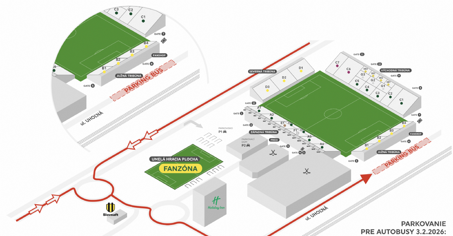 Z dôvodu dopravných obmedzení a bezpečnostných kontrol vás žiadame o skorší príchod na zápas.