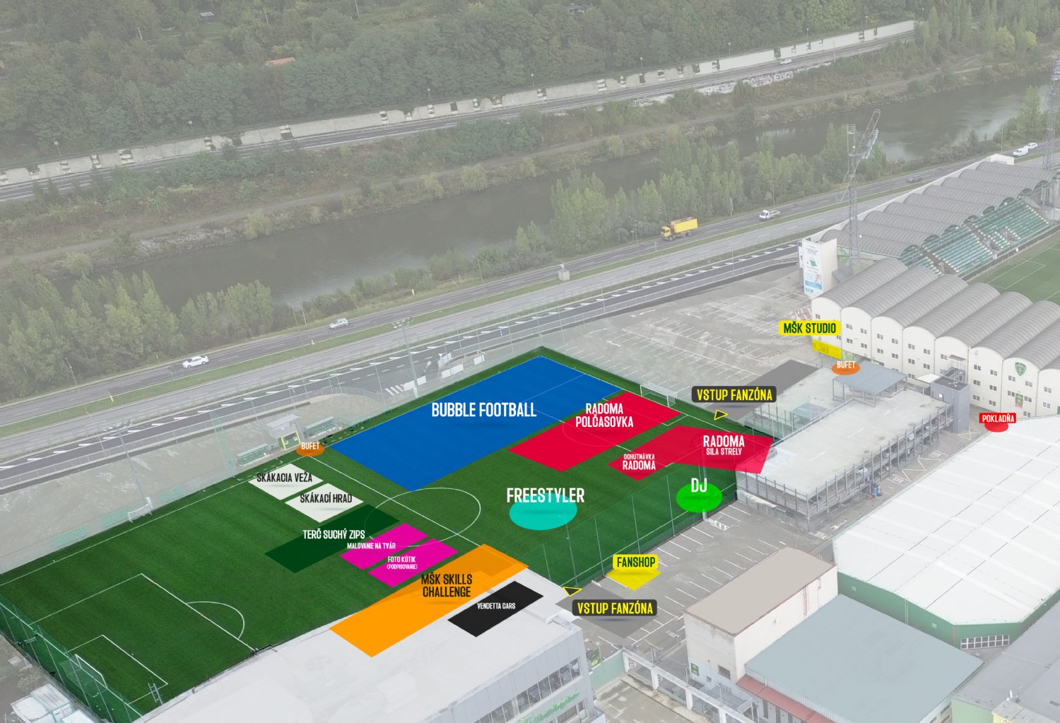 Už od 12:00 hod. bude na umelej tráve (vchod cez Športovú ulicu) pripravená bohatá Fanzóna MŠK so sprievodným programom, atrakciami, súťažami a maskotom Šošonom. Skorší príchod vám umožní komfortnejší vstup na štadión a plynulý priebeh celej návštevy.