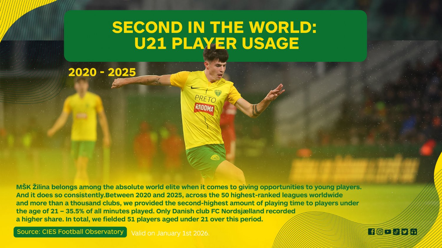 Unique philosophy, elaborate concept of homegrown and young player development. This has put MŠK Žilina at the top in Slovakia and around the world. The only homegrown players league match made us recognizable.